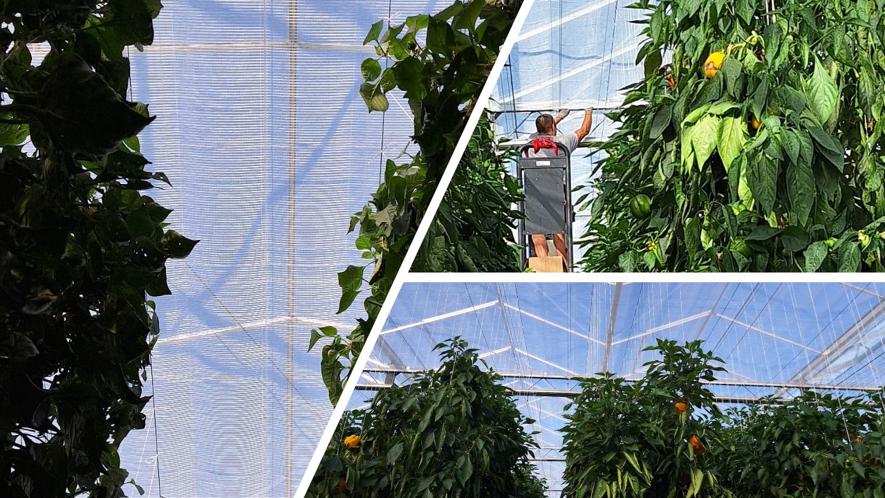 Bij paprikakwekerij Gemapa in Deinze werd afdeling 2 vorige maand, aan het einde van het oogstseizoen, voorzien van een nieuw scherm. Deinze ligt niet ver van Phormium's hoofdkantoor in Lokeren: reden genoeg dus voor sales manager Vitalina Tsourkan en application manager Jesse Verbeke om er even langs te gaan. Dit gaf hen de kans om een kijkje te nemen bij de voortgang van de werkzaamheden en bij te praten.